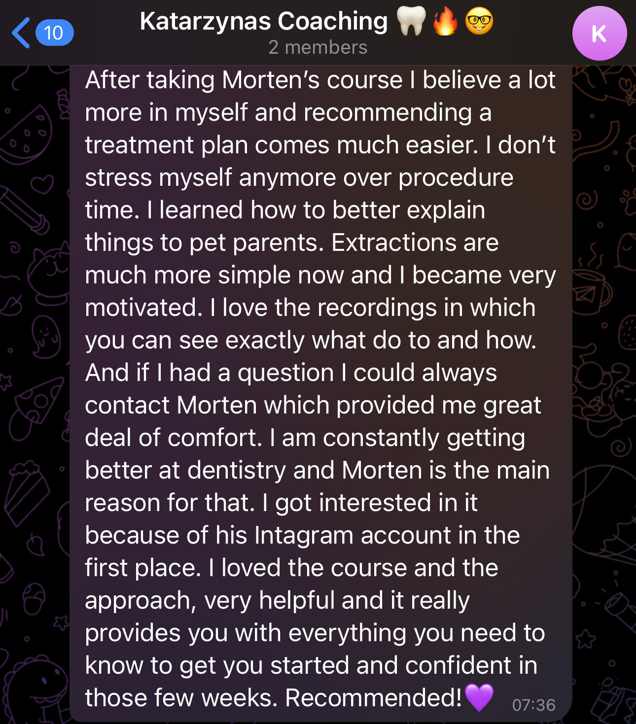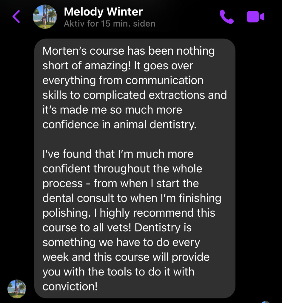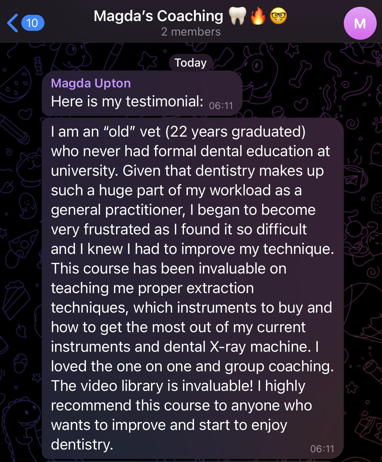 🧘♂️You will also learn how to make your dental days less stressful. We all know how it feels with so much disease to treat and yet so little time. You will learn how to set the right expectations and boundaries with the pet owners (and the clinic owner) so you will never feel stressed again and may even get lunch one in a while 😅